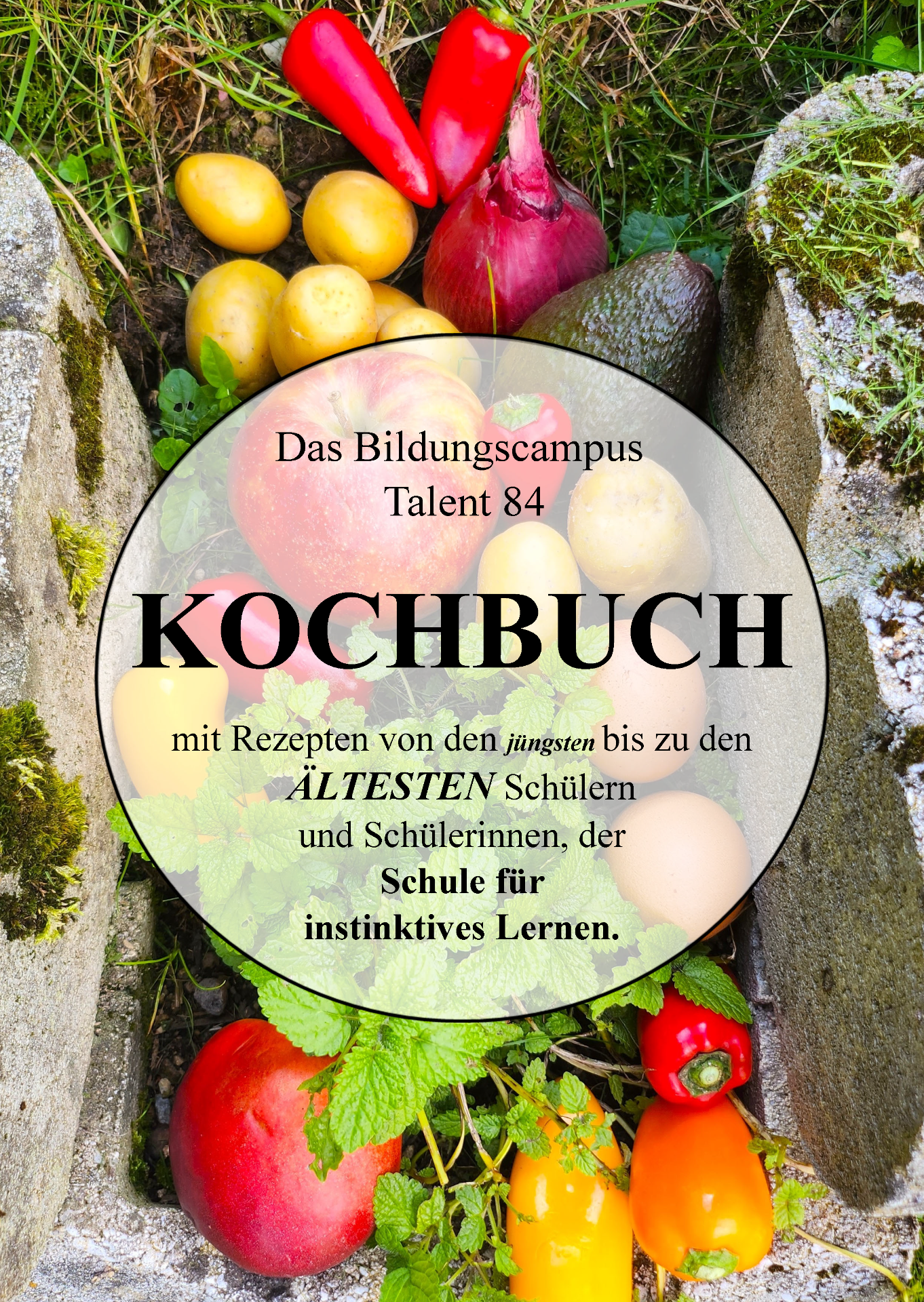 Mit 70 Seiten eigener Lieblings- und Spezialrezepte, zusammengestellt und verfasst von den jüngsten bis ältesten Schülerinnen und Schülern der Schule für instinktives Lernen des Bildungscampus Talent84.